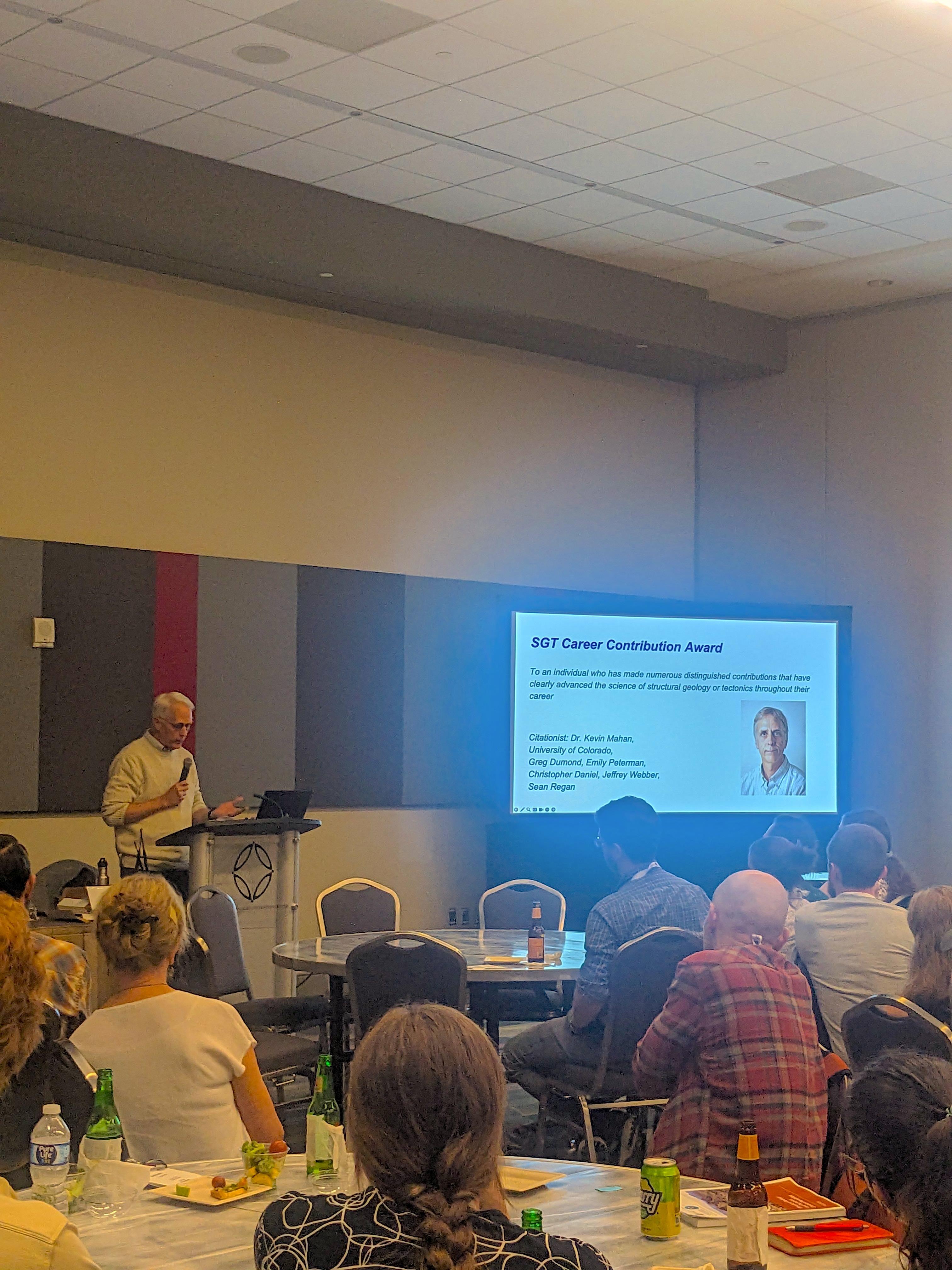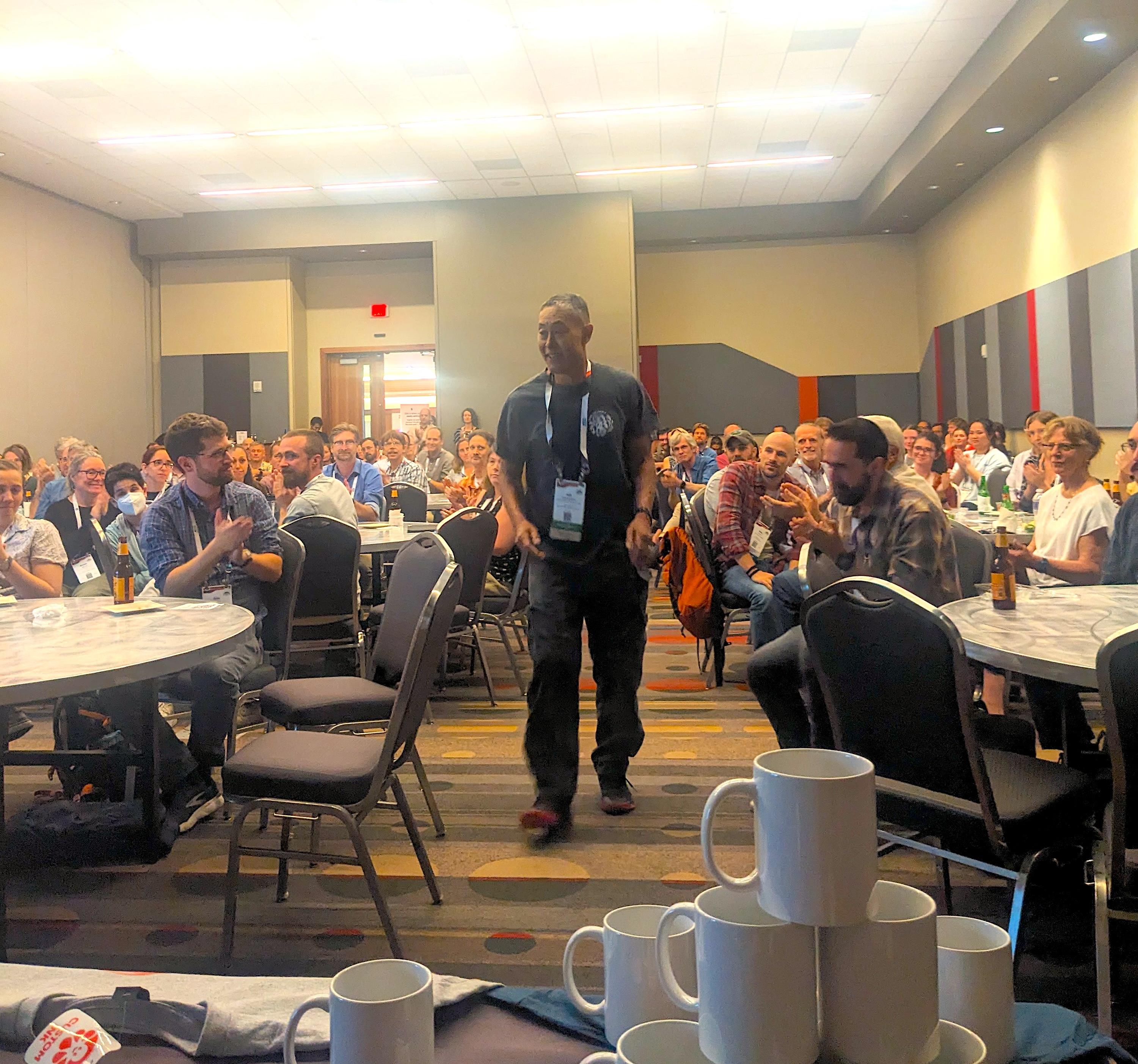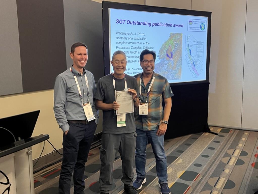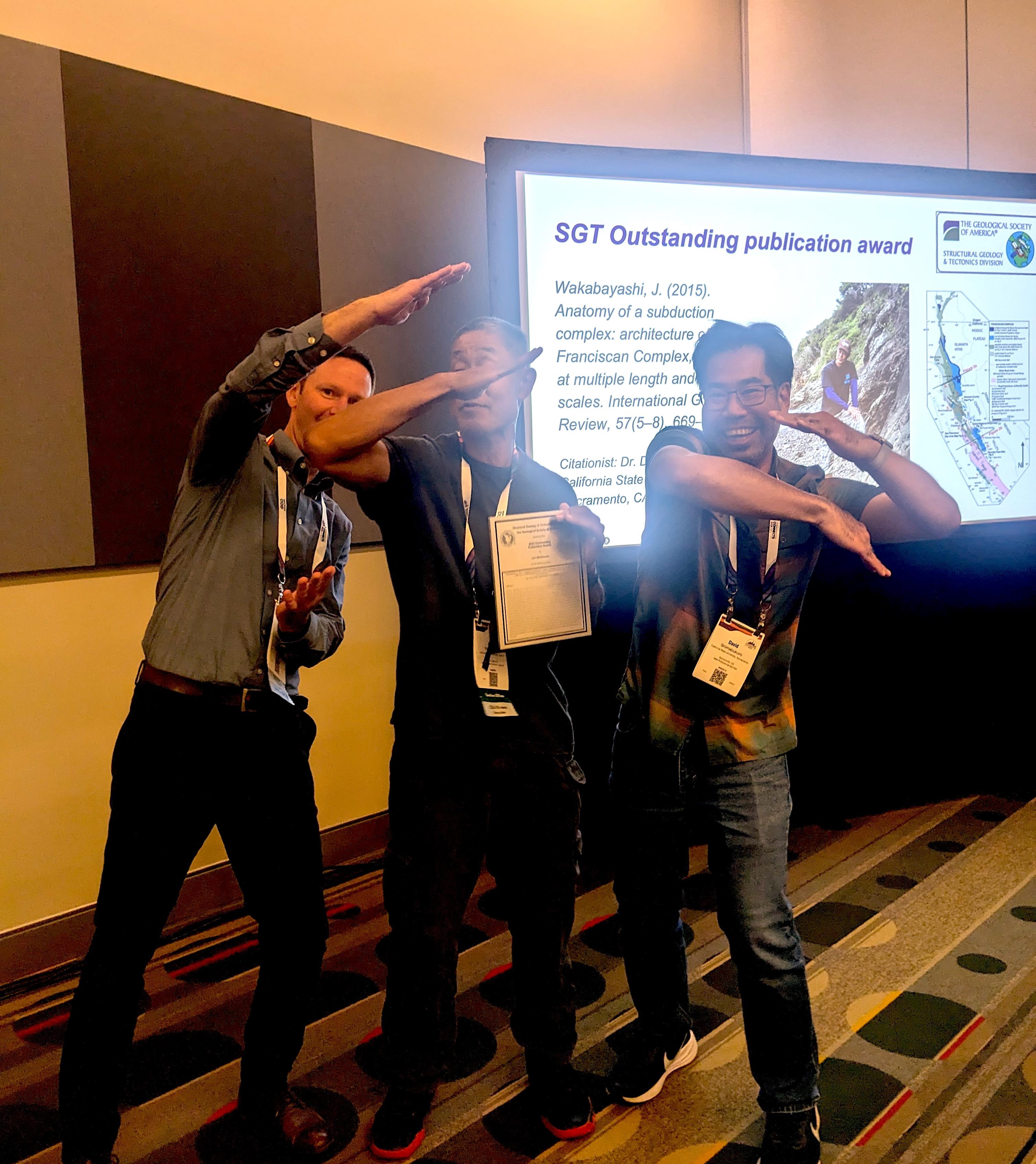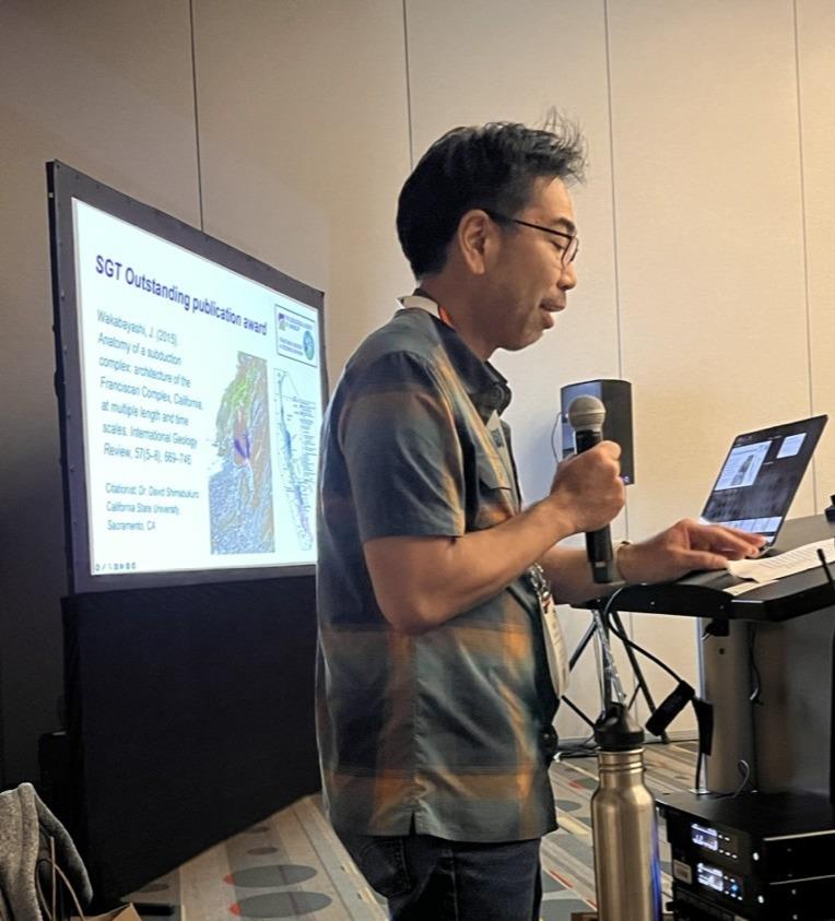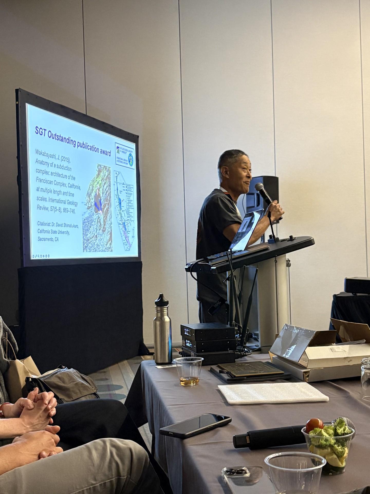 John Wakabayashi accepting Outstanding Pub. Award